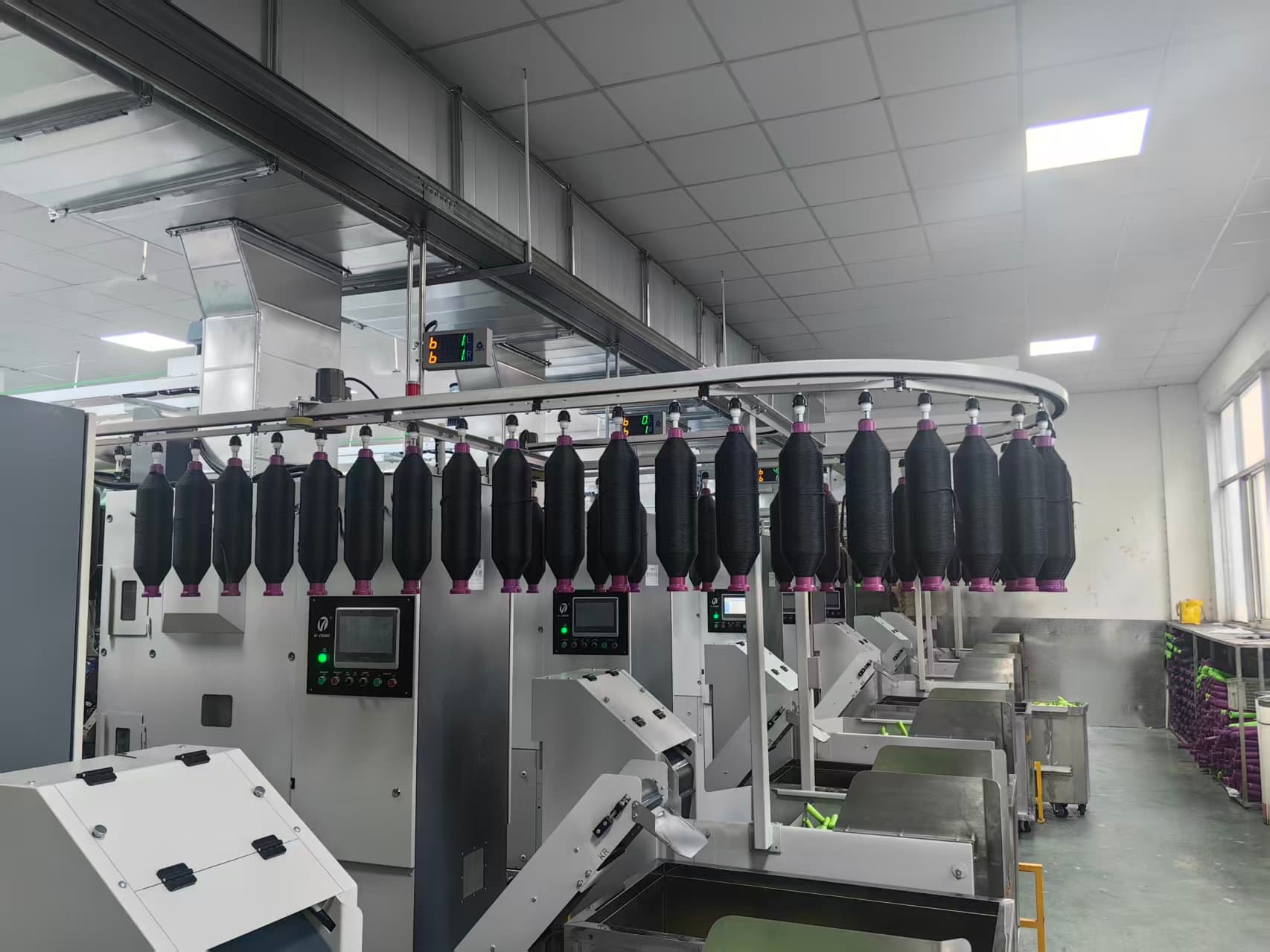 ¡Nuestro cliente de muchos años está renovando su taller con nosotros de nuevo! Este proyecto es bastante grande: un taller completo con 58 máquinas de hilar de anillos, todas con la doble modificación de mudada automática + hilatura compacta.